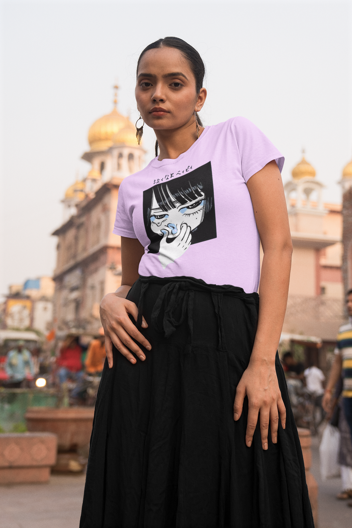 Featuring a striking DTF-printed Anime Crying Girl Panel design, the graphic captures an expressive manga-style illustration with bold lines and emotional detail. The black-and-white panel paired with subtle blue highlights gives it a modern, aesthetic, and artsy look — perfect for anime lovers and fans of Japanese-inspired fashion.