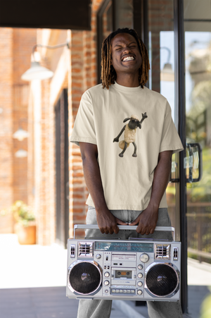 This oversized t-shirt is made for carefree moods, loud music, and unapologetic fun. Featuring a playful dancing sheep graphic, this tee brings humor and personality into your everyday streetwear rotation.