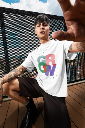 The bold DTF-printed “GROW” design represents progress, mindset, and self-improvement — making it a powerful graphic for men who believe in leveling up. Clean, minimal, and impactful, it pairs effortlessly with jeans, cargos, or joggers for a stylish everyday fit.