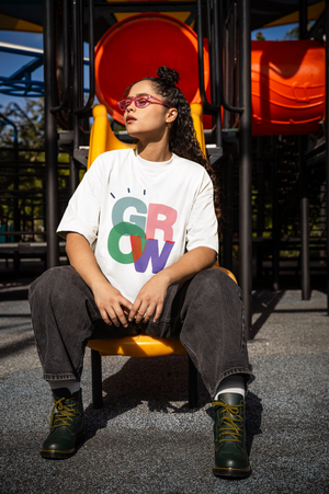 The DTF-printed “GROW” design brings a beautiful reminder of growth, positivity, and self-evolution. With its clean, minimal aesthetic, this tee is perfect for women who love wearing uplifting graphics that reflect their mindset and inner strength.