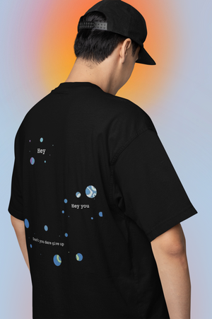 The subtle, inspirational layout combined with galaxy-toned circles gives the tee a calm, aesthetic, and meaningful vibe — ideal for those who love minimalist art with uplifting messages.