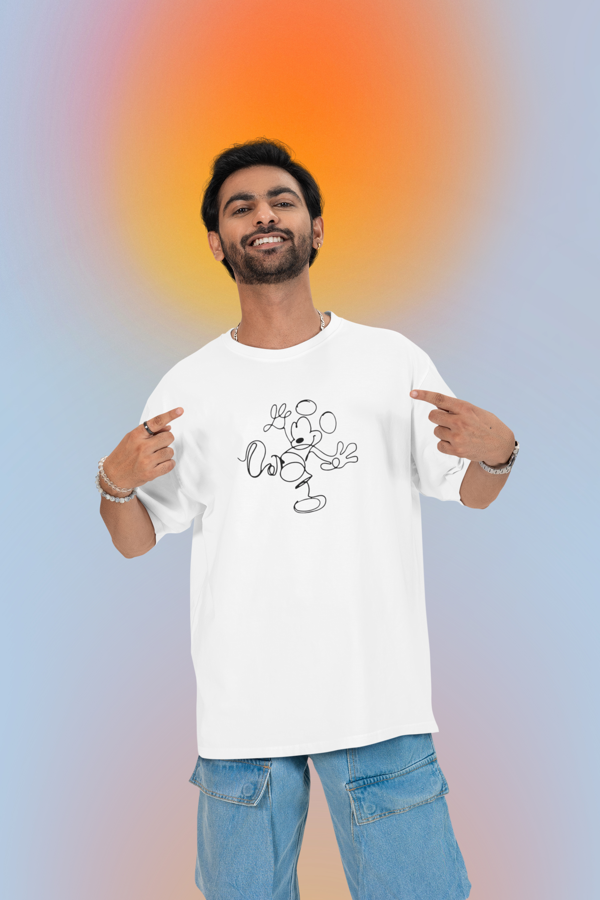 Bold, playful, and street-ready — this men’s oversized tee features a Mickey Mouse graffiti-style back print that instantly stands out. Designed for those who like their streetwear expressive, the artwork blends classic character nostalgia with a modern, edgy twist.