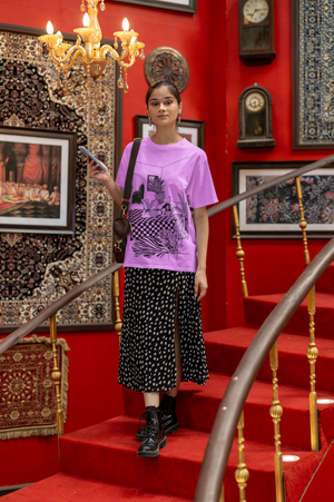 The DTF-printed “Purple Dreamer” design brings a soft, whimsical feel with its artistic detailing and calming aesthetic. It’s the perfect tee for women who love subtle creativity, pastel tones, and outfits that reflect a peaceful, dreamy personality.