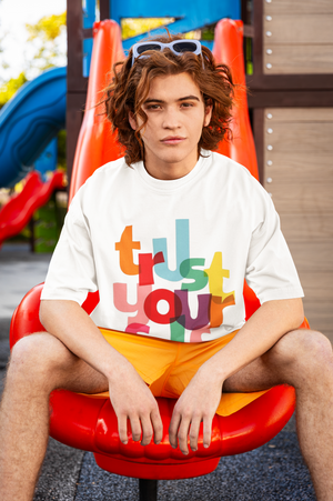The bold DTF-printed “Trust Yourself” design brings a strong motivational message that encourages self-belief and inner strength. Simple, powerful, and stylish, this graphic tee is perfect for men who love wearing inspiring streetwear that reflects their mindset.