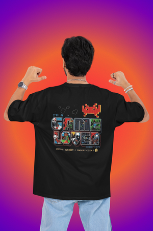 The bold DTF-printed video game design brings nostalgic gaming vibes with a cool, detailed finish that captures the energy of classic and modern gaming culture. With its relaxed oversized fit and drop shoulders, this tee delivers the perfect blend of comfort, streetwear edge, and gamer attitude.