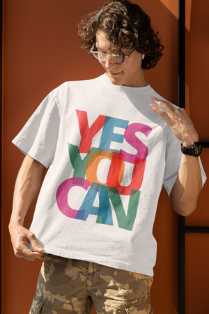 The bold DTF-printed “YES YOU CAN” design adds a powerful motivational statement, making it a standout choice for men who love confident and meaningful streetwear. This graphic t-shirt pairs perfectly with jeans or joggers and works for any casual look.